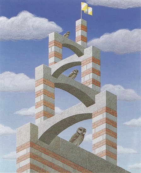 Jos de Mey was a Flemish-Belgian painter known for his paintings that frequently included impossible objects.  In the painting below, three owls perch on a tower that would not be possible in the real world.  Fortunately for us, we can escape the real world any time we want by diving into one of Jos de Mey’s paintings.