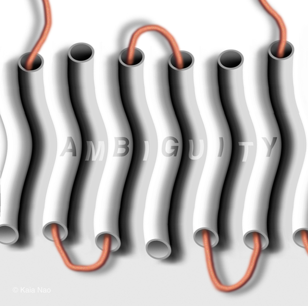 Ambiguity is defined as doubtfulness or uncertainty with respect to interpretation. In the image below, a string is threaded through a series of tubes. Do you notice anything doubtful or uncertain as you try to interpret how this string is threaded through the tubes?