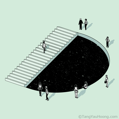 Tang Yau Hoong is a visual artist and graphic designer from Kuala Lumpur, Malaysia who loves simplistic design. Many of his works incorporate elements of illusion and surrealism. In his impossible design below titled “D for Deceive”, the person walking up the staircase will be shocked to discover that they did not ascend upon reaching the top.