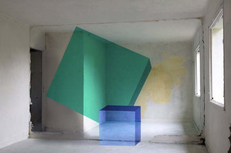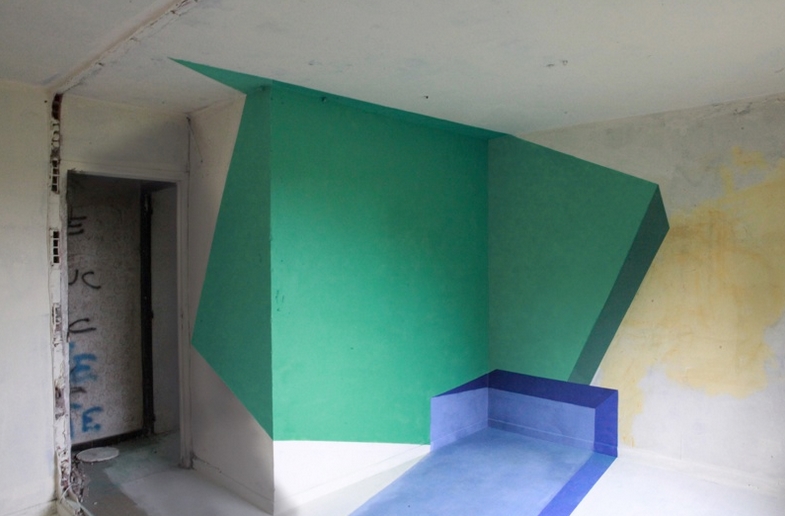 This anamorphic cube was created in 2011 by Alexis Facca for a promotion for Sqwear, an online fashion store exclusively dedicated to young designers.  The cube required fourteen cans of spray paint to complete and was painted across several walls, the floor, and the ceiling.  Facca is originally from France, but currently resides in Belgium.
