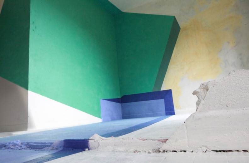 This anamorphic cube was created in 2011 by Alexis Facca for a promotion for Sqwear, an online fashion store exclusively dedicated to young designers. The cube required fourteen cans of spray paint to complete and was painted across several walls, the floor, and the ceiling. Facca is originally from France, but currently resides in Belgium.