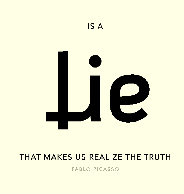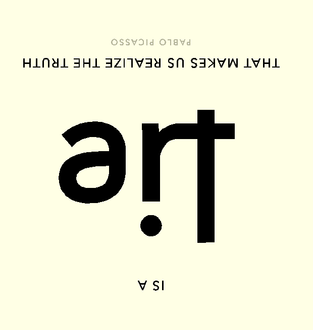 When the image is rotated 180 degrees, it completes a quote from Spanish artist Pablo Picasso by reading “is a lie that makes us realize the truth”. The word ‘lie’ is made from the same lettering that spells ‘art’ in the image above.