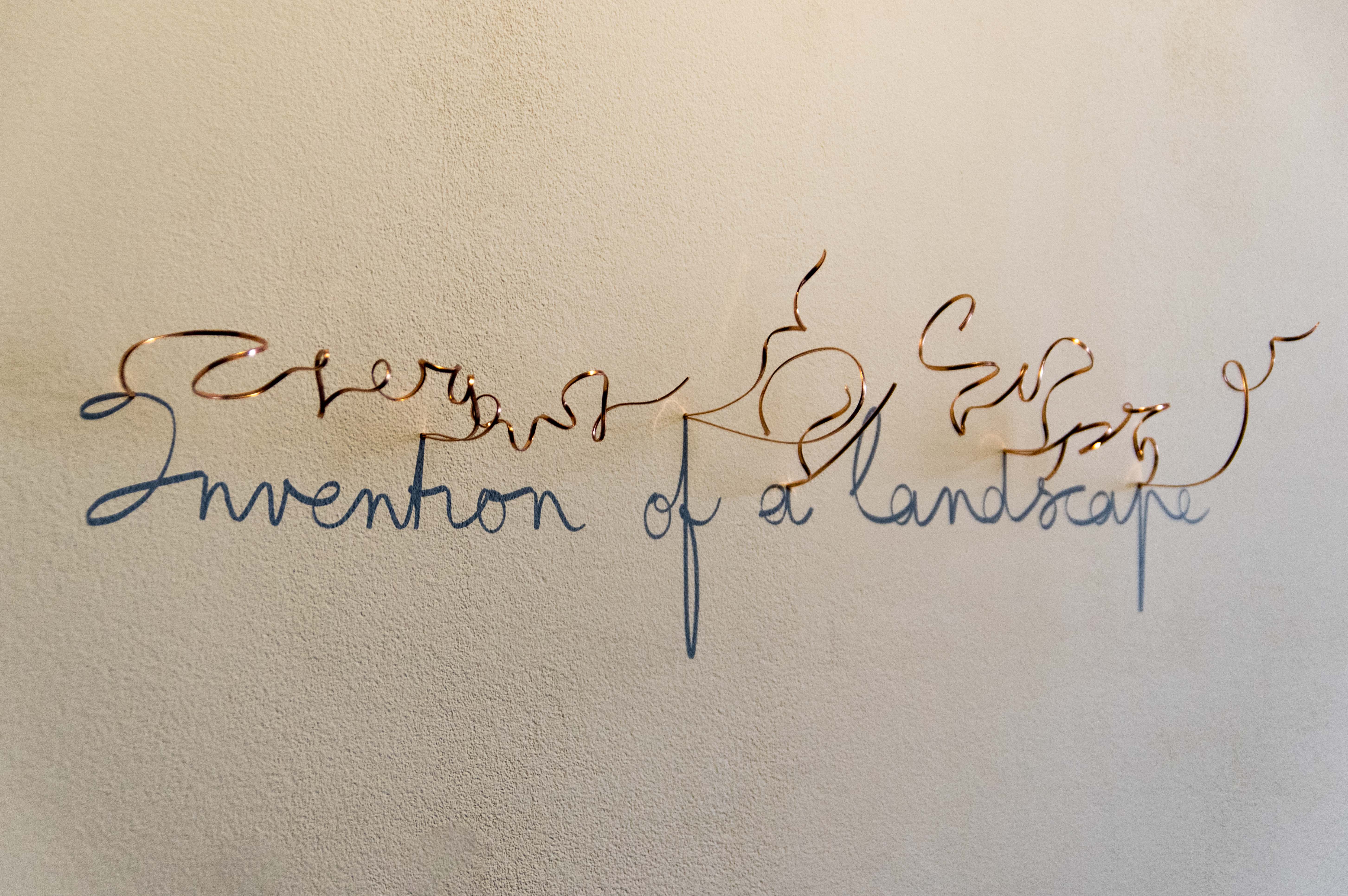 Fred Eerdekens mainly works in three dimensions with the following components – language, material, light, and shadow. In 2014, he created the following piece using bent copper and a light source. The shadow formed by the twisted copper when light is shined on it from the right angle reveals the cursive phrase “Invention of a landscape”.