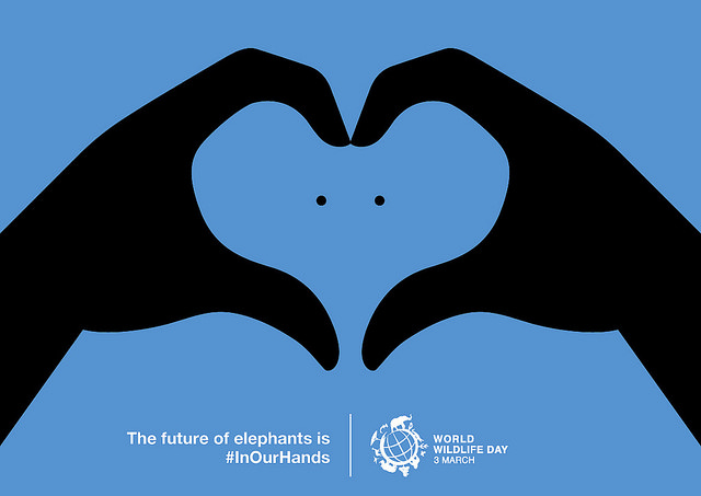 Last month, winners were selected in a poster contest to spread the word about UN World Wildlife Day 2016. In total, over 300 entries were submitted and three of these submissions were selected as the overall winners. One of these posters, presented below, was created by Patrick George from the United Kingdom. It features two hands forming a kind of heart shape. The negative space between the two hands contains an image of an elephant. The tagline on the poster is “The future of elephants is #InOurHands”, which makes this design even more relevant.