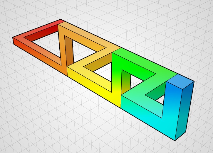 Take a look at this twisted figure that its creator Andreas Aronsson calls an impossible worm. If you study the multi-colored shape in detail, you will notice that it is really just five interconnected impossible triangles (also known as a Penrose triangle). On his blog, Andreas notes: