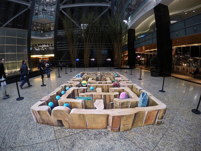 Streetpainter Leon Keer completed this anamorphic painting featuring Pac Man in Detroit on October 20, 2015. This 3D painting was created using acrylics on the floor of the downtown One Campus Martius building owned by Dan Gilbert. The painting was left on display through the end of November 2015, giving all those who work in the building a chance to see and interact with it. This art was supported by the Bedrock and Library Street Collective.