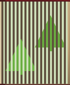 While the upper Christmas tree appears to be significantly darker than the lower tree, they are indeed the same shade of green. When a color is placed between darker colors (like the vertical stripes in the image above), it has a tendency to look darker. Conversely, it has a tendency to look lighter when placed between lighter colors.