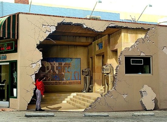 The title of this realistic wall mural located on Main Street in Los Gatos, California is Siete Punto Uno (or seven point one). The title is a reference to the 1989 Loma Prieta earthquake that caused significant damage throughout the community of Los Gatos. The quake reached a surface-wave magnitude of 7.1 on the Richter Scale killing 63 and injuring thousands more in northern California.