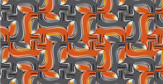 We previously featured a tessellation pattern from Nikita Prokhorov that was made from the head of a famous rabbit. This time, he has designed a pattern without gaps or overlaps utilizing orange and gray foxes.