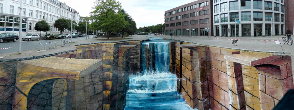 Gregor Wosik is a street painter with exceptional talent. He was born in Poland but currently resides in Germany where he works as a freelance artist. His street painting below makes it seem that a waterfall running down the center of a street. Several other photographs, including one that shows the painting from the opposite angle can be seen in the full post.