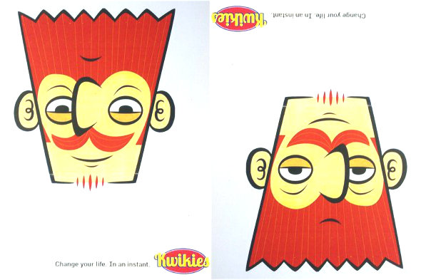 Maine recently announced that they were going to start selling instant scratch-off lottery tickets called “Kwikies”. After sending a note to 1,300 retailers announcing this, complaints started flooding in about the name being inappropriate. It now seems that the tickets will be called something else. Interestingly enough, Maine used a topsy-turvy optical illusion to help advertise the launch of these new tickets. The caption reads, “Change your life. In an instant.” Rotating the card 180 degrees turns a bald grumpy man with a beard into a younger man with a full head of a hair and a smile on his face.