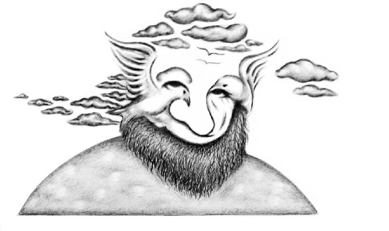 What do you see in the pencil sketch below? Do you see a bearded elf or two birds in a nest?