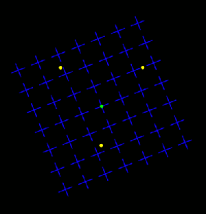 Stare at the blinking green dot in the center of this animated image. As you do, you will begin to experience a motion induced blindness. The three yellow dots will start to randomly disappear and reappear. Sometimes you will notice that one is missing and other times it may seem that two or all three are missing. The yellow dots do not disappear at all, they are always present. This can be confirmed by watching the animation for a while without fixating on the blinking green dot.