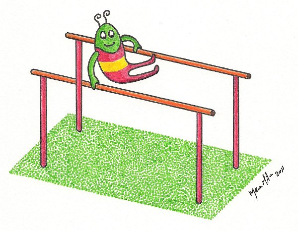 The strange green creature below is showing off his gymnastic skills on the parallel bars. But are these bars really parallel? Does he get a higher score for the extra degree of difficulty?