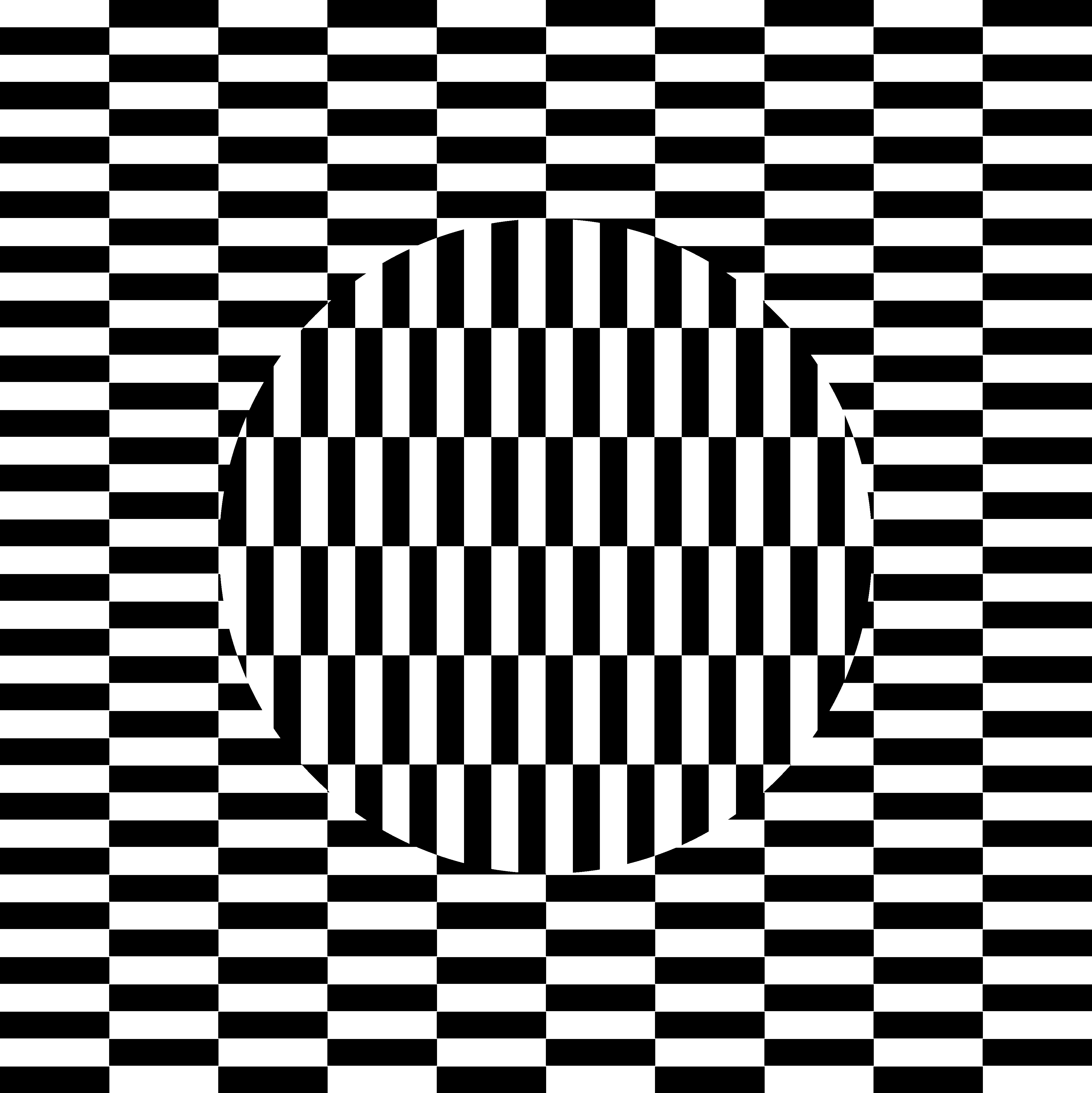 The Ouchi illusion is named after Japanese artist Hajime Ouchi. The central disk with vertical black and white bars appears to float above the background with the horizontal black and white bars.