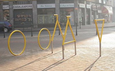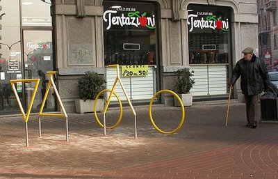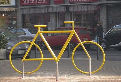 This yellow bicycle sculpture is located in Milan, Italy, a city best known for fashion. While it does not look particularly special, it happens to be an optical illusion. Can you figure out what is going on?