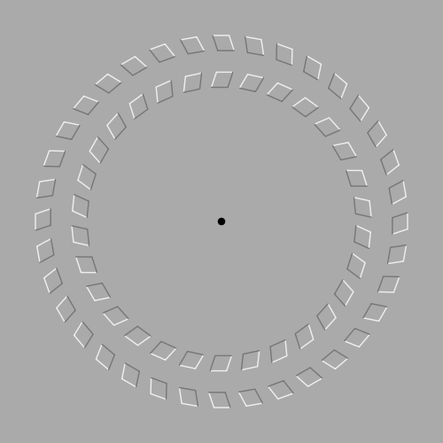 Look at the black dot in the center of this image and move your head closer to your screen and then back again. Do the outer circles appear to be moving?