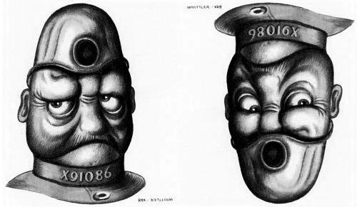 Sadly, Rex was killed in 1944 while in combat during World War II. He was only 39 years old. Two additional examples of Rex’s inverted faces can be found after the jump.