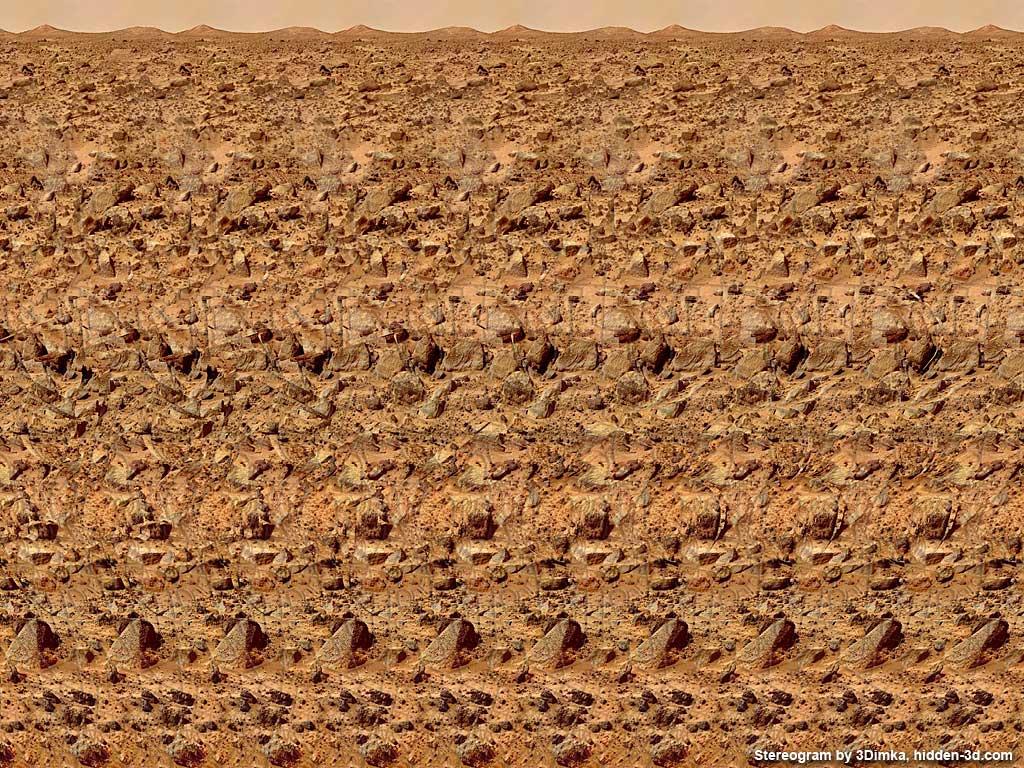 Can you find the hidden image on the surface of Mars in this stereogram created by 3Dimka?